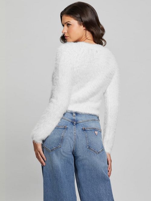 Fuzzy knit cardigan sweaterSplit round necklineLong sleevesCropped fitDual two-way front zip closures71% Polyamide/Nylon, 29% AcrylicHand wash