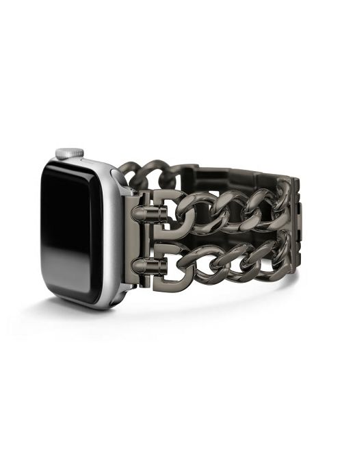 Dark silver-tone watch braceletDouble chain-link designMagnetic end connectionsLink buckle closureFits case diameters 42-44 mm