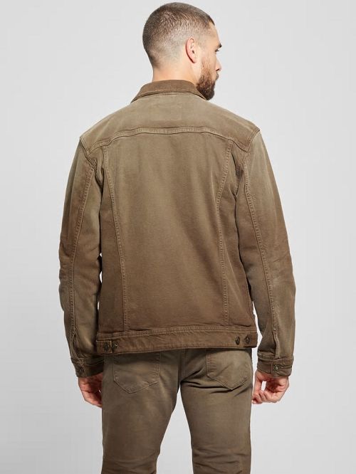 Brown denim jacketFolded collarDual chest and slip pocketsLong sleeves with buttoned cuffsSignature iconFront button closures99% Cotton, 1% Elastane/SpandexHand wash