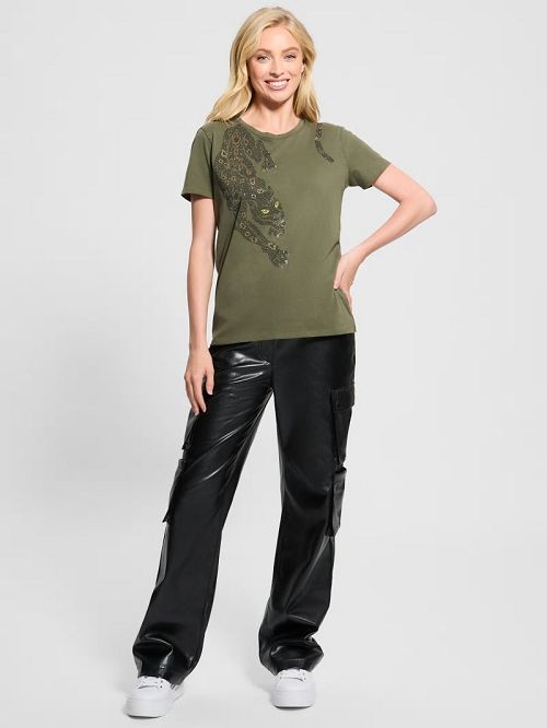 Jersey teeEasy fitCrew necklineFront embellished panther graphicShort sleevesPull-on designKnit100% Organic Cotton. Organic cotton fiber.