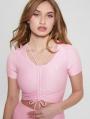 Synthetic fabric active crop topScoop neckShort sleevesDrawstring fasteningMicrofiber87% Polyester, 13% Elastane. This item is made with recycled components.