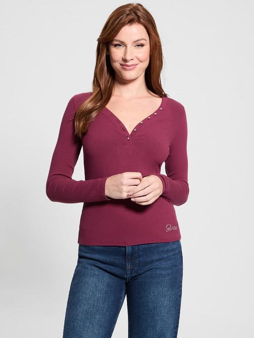 Guess Eco Kyla Rib Henley Tee Rood | GUESS-SN27443