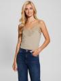 Sweater-knit camiLace-trim V-necklineSleeveless. Adjustable straps.Pull-on designYarn50% Recycled Polyester, 28% Polyester, 22% Rayon. Contains recycled bottles.Hand wash