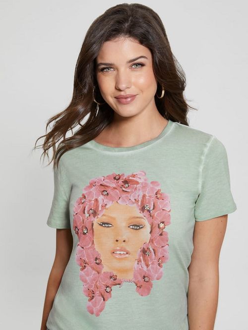 Jersey graphic teeEasy fitCrew necklineFront floral queen graphic with embellishmentsShort sleevesPull-on designKnit60% Organic Cotton, 40% TENCEL™ Modal. Organic cotton and Eco-responsible wood-based fibers.Hand wash
