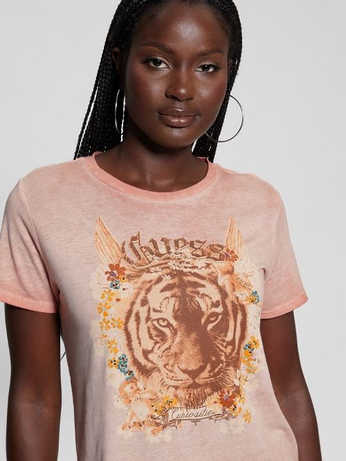 Jersey graphic teeEasy fitCrew necklineFront tiger God graphic with embellishmentsShort sleevesPull-on designKnit60% Organic Cotton, 40% Modal. Organic cotton fiber.Hand wash