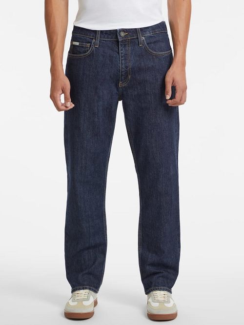 Woven stretch-denim jeansArtistic dark-wash indigoSlim fit and straight legMedium rise, sits at hipsFive-pocket constructionZip fly with button closure11.5" front rise. 14.75" back rise.16.5" leg opening. 30" base inseam. Measurements taken from a size 32.79% Cotton, 20% Recycled Cotton, 1% Elastane/Spandex. Contains recycled cotton fibers.Machine wash