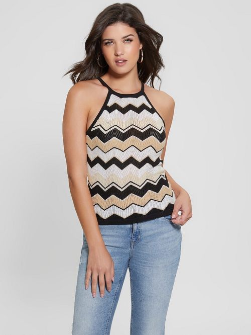 Guess Harper Chevron Stripe Sweater Tank Zwart | GUESS-SN27774