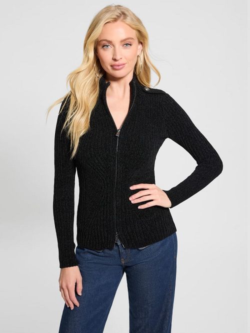 Guess Keily Zip-Front Sweater Zwart | GUESS-SN27465