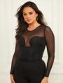 Knit bodysuitSweetheart cups with high illusion necklineLong sleevesThong fitSnap-bottom closure90% Polyester, 10% Elastane.