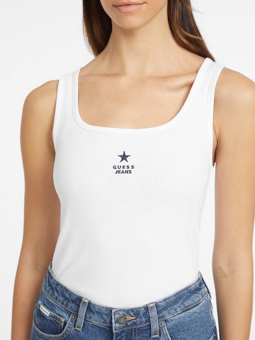 Guess Slim Embroidered Star Tank Wit | GUESS-SN27415
