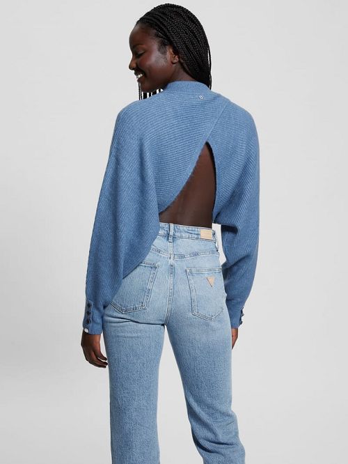 Guess Toki Open Back Shrug Sweater Blauw | GUESS-SN27638