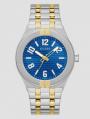 Gold and silver-tone analog watchBlue dial with debossed geometric patternBold hour markersPolished stainless steel link braceletCase diameter in mm: 38Water resistant up to 50 m/ 160 ft2 year limited warranty